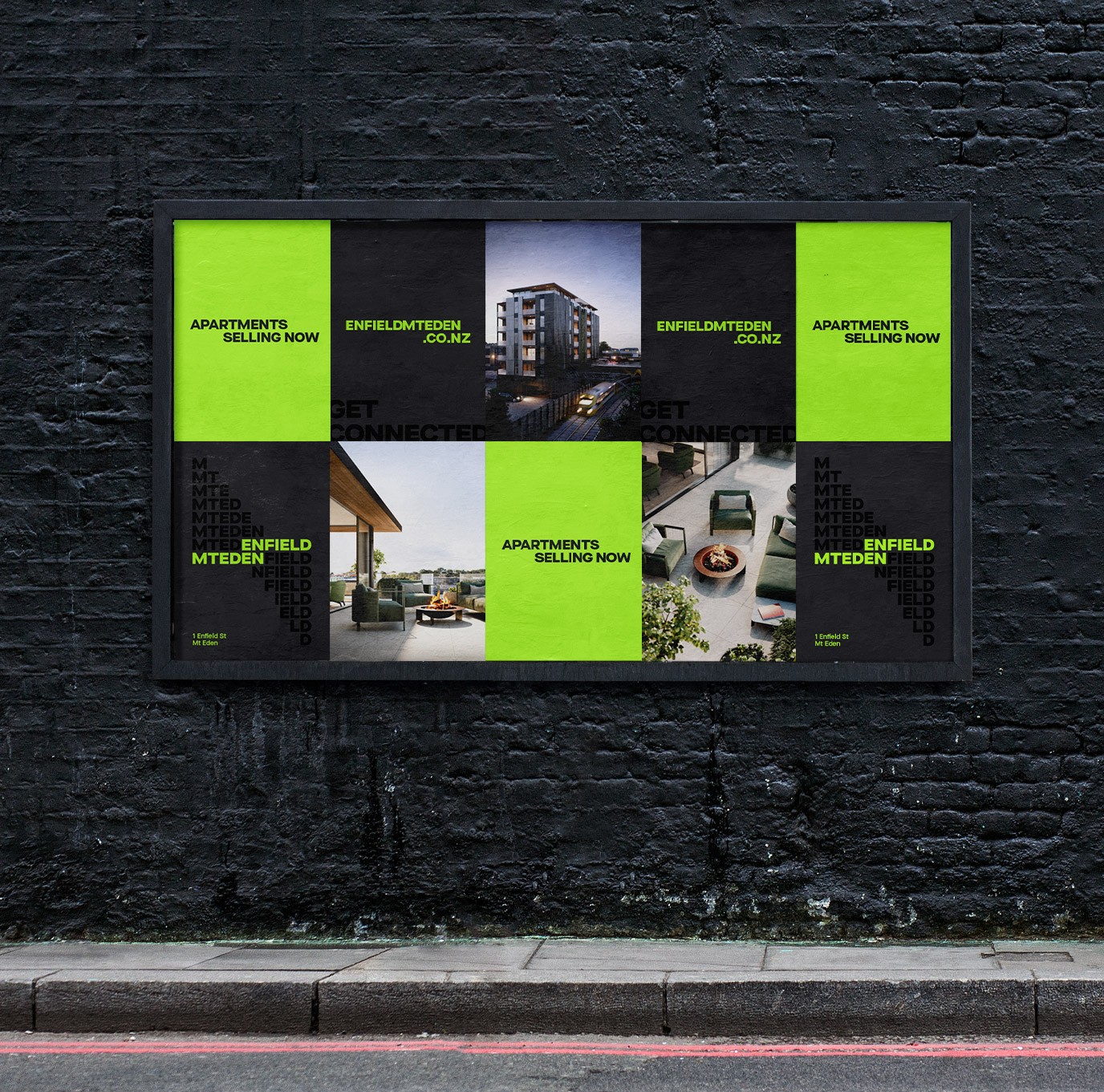 We embraced the location's urban and suburban characteristics, chose an unexpected colour palette inspired by contemporary street culture, and paired it with a dynamic typographic language to convey ideas of motion, connection, and to capitalise on Enfield’s excellent transport links – bringing to life the positioning statement ‘Get Connected’.