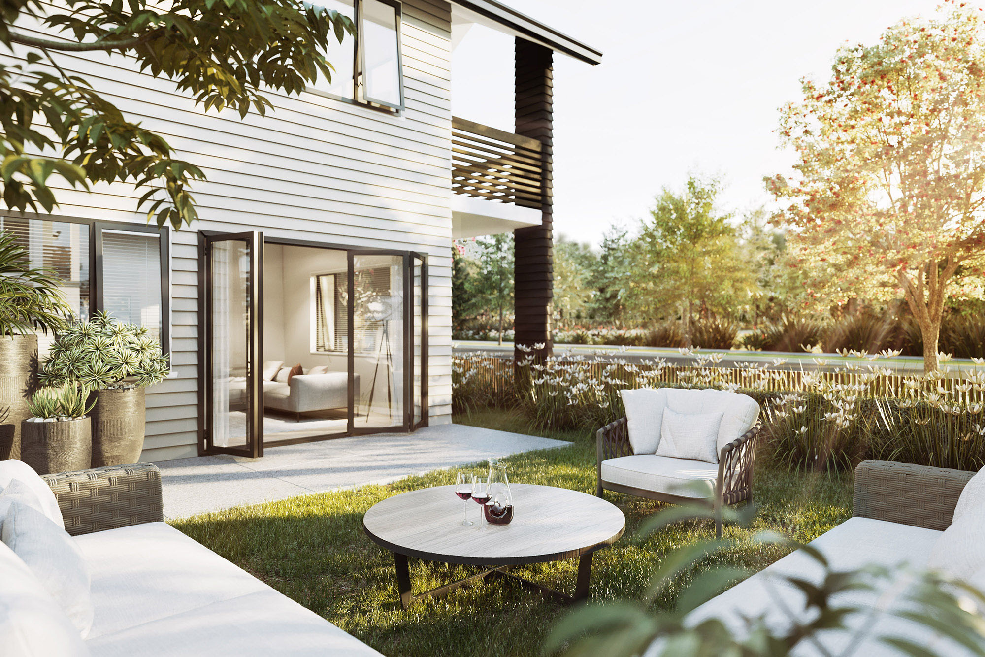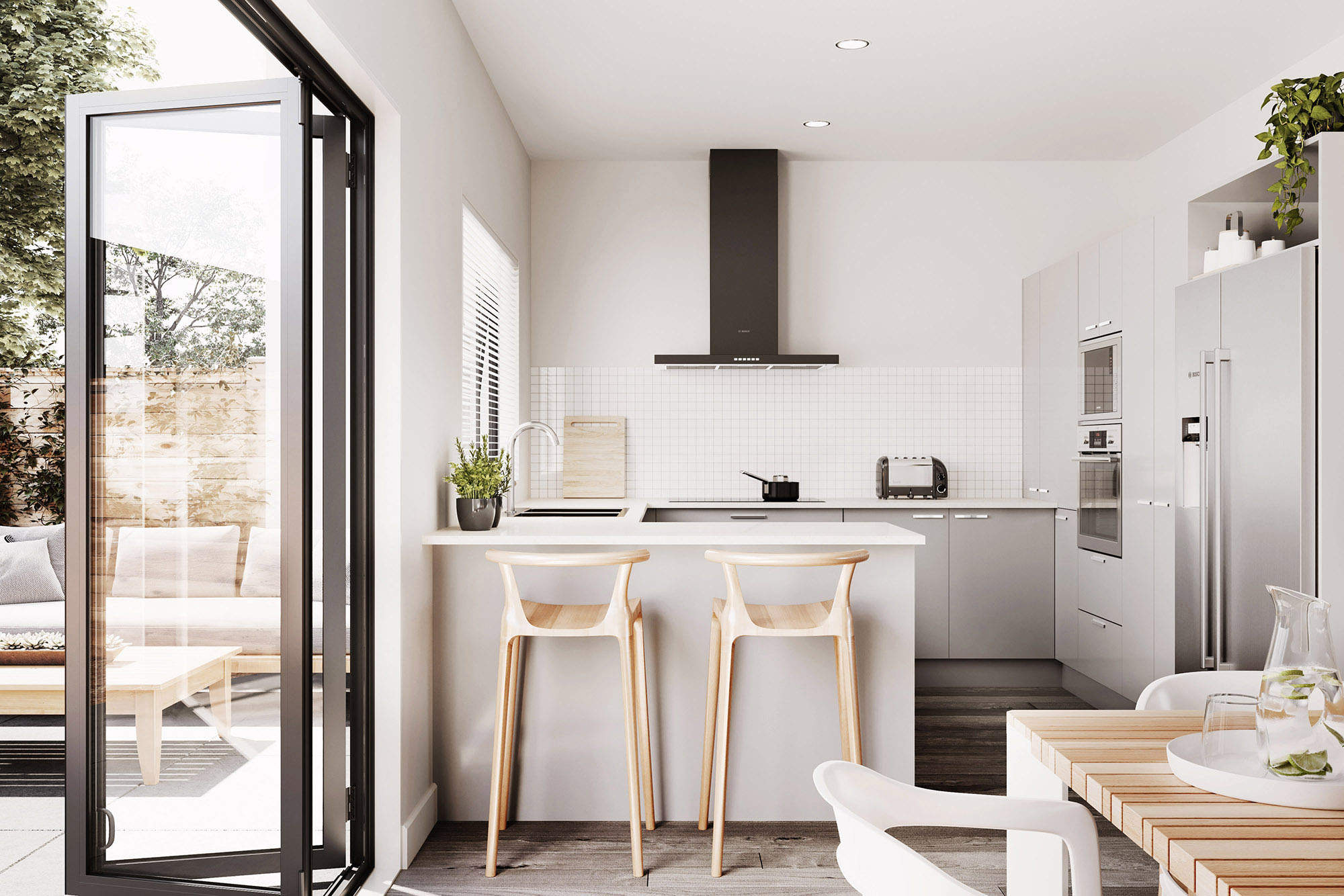 Our strategy was to position Hobson Green as an emerging family-friendly neighbourhood. Leveraging its prime position next to Scott Point Sustainable Park, we created a brand that was fresh, lush and green, connecting the development to nature and the outdoors. CGIs were styled to ‘bring the outside in’, through the use of planting and timber furniture set against a backdrop of calm, neutral tones.
