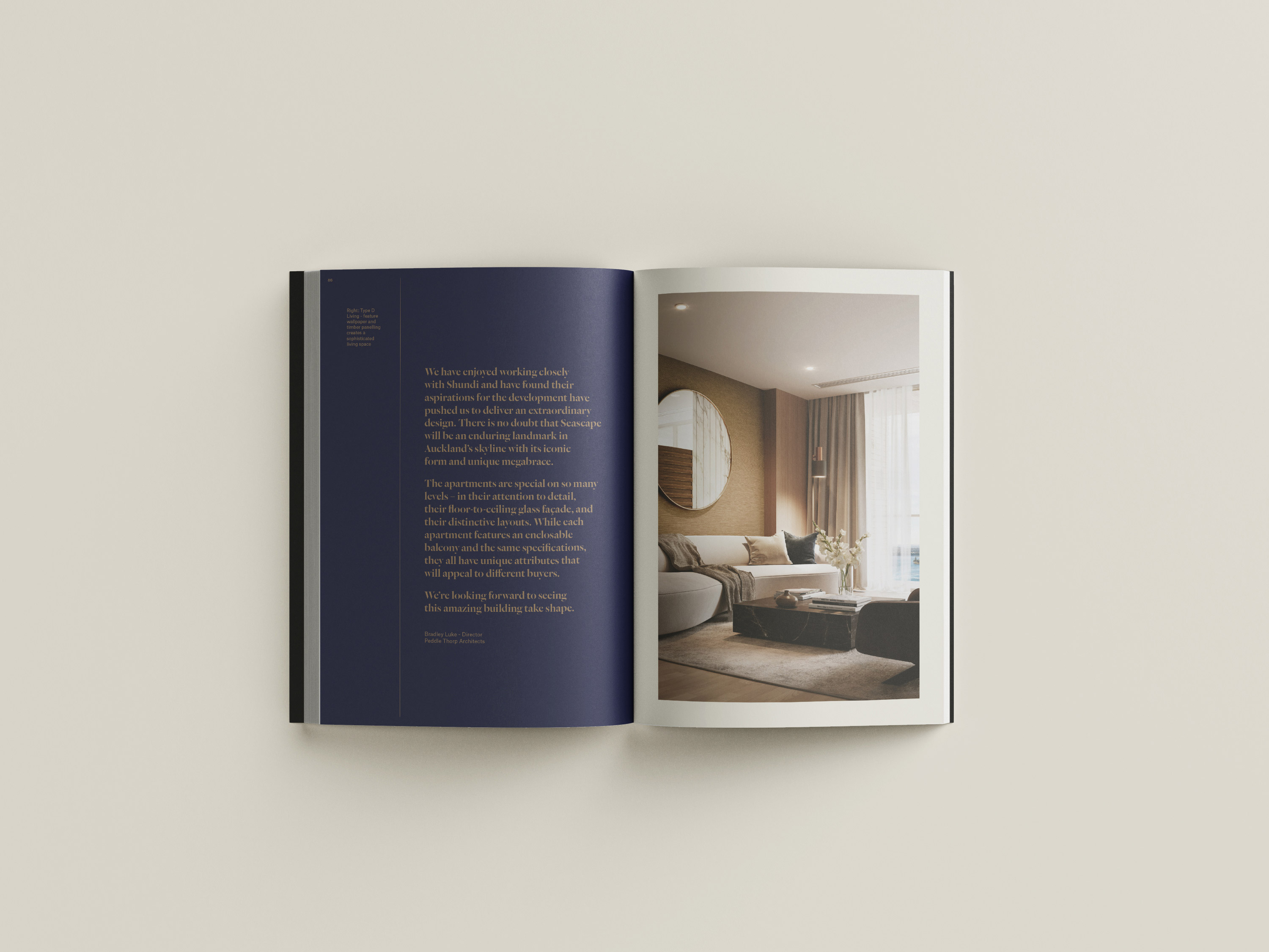 The apartments are aimed at local and overseas professionals and downsizers seeking a luxurious residence in the Auckland CBD. The developers sought to create an icon within the residential market and asked us to create an opulent brand befitting of the location, high price-point and premium standard of the apartments.